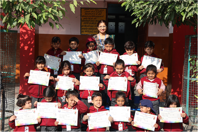 Certificate Distribution For Participating On Expression Day At Junior Wing. Class Nursery LKG & UKG at Junior Wing (ADA Campus).